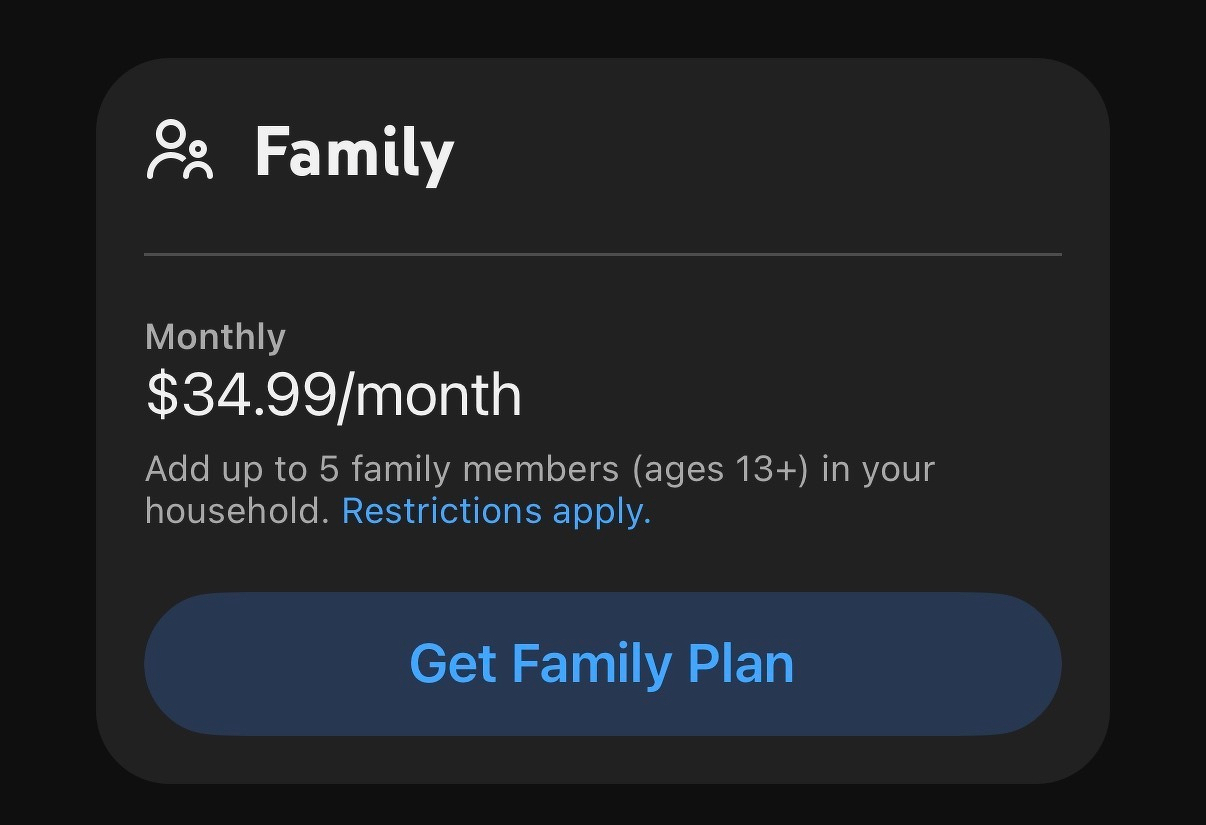 When I look at the Youtube Family Plan on my phone, it $34.99/month.